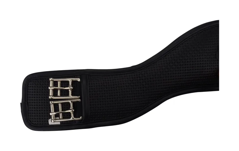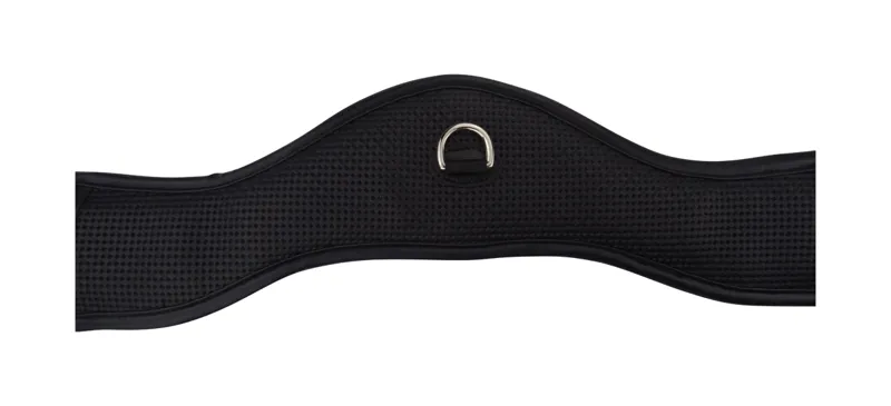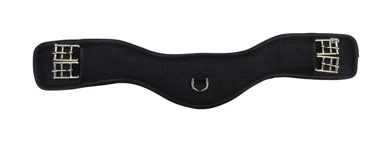 Our anatomic dressage girth is made with a new and improved anti-chaff waffle material and the finest quality stainless steel cast roller buckles. The elastic is kept firmly in place with a unique Cameo StayPut strap. The girth is further enhanced by a soft memory foam inner and a Dee for martingale attachment.