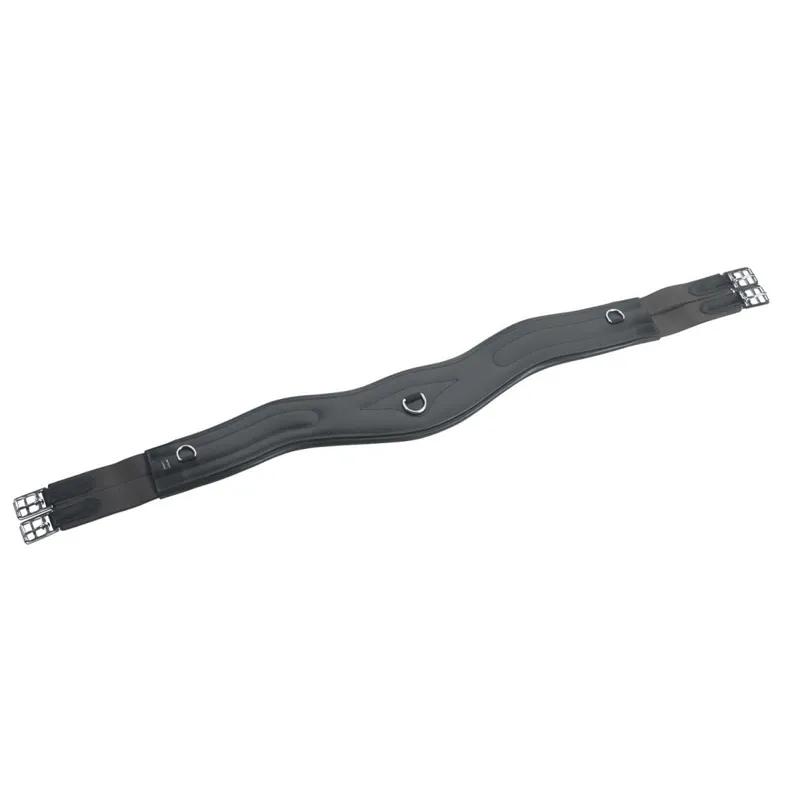 Anatomically shaped leather long girth with optimum elbow room for the horse. Exceptionally comfortable thanks to soft padding. The girth is fitted with an elastic insert on the both sides, incl. D-ring. Available Black and Brown sizes 42-54 Features: Optimum elbow room Soft padding Elastic insert on the both sides Incl. D-ring Size: 42-54 Colour: Black or Havana