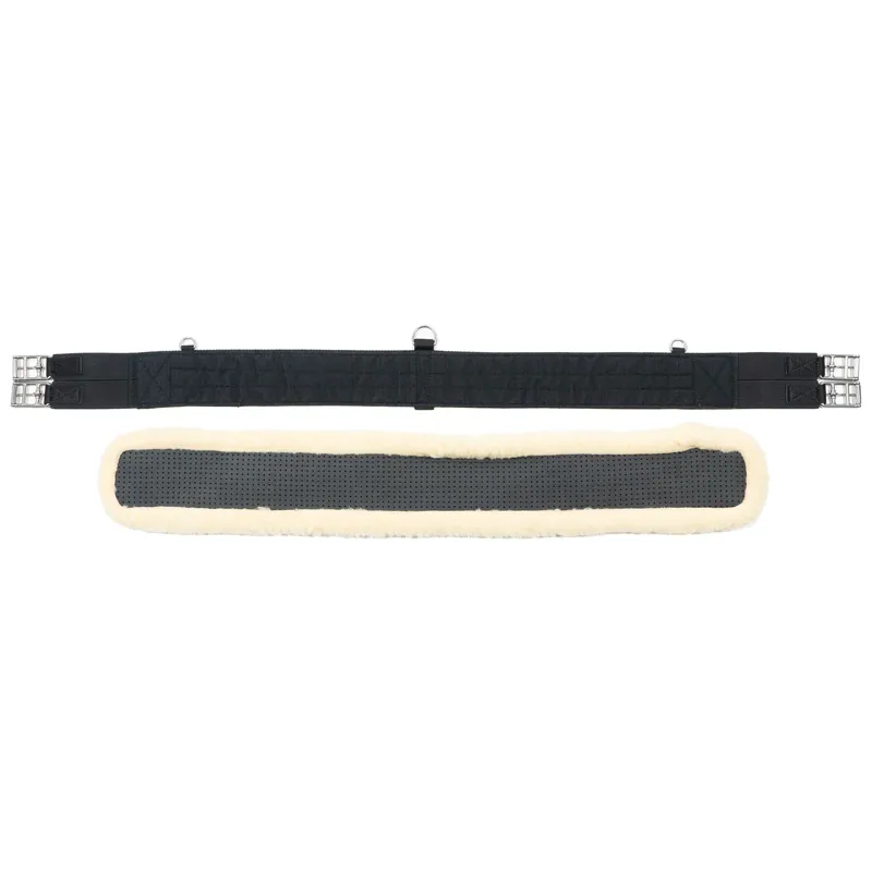 This versatile nylon webbing girth has triple-layered elasticated ends and stainless steel buckles, plus D rings for the attachment of training aids.