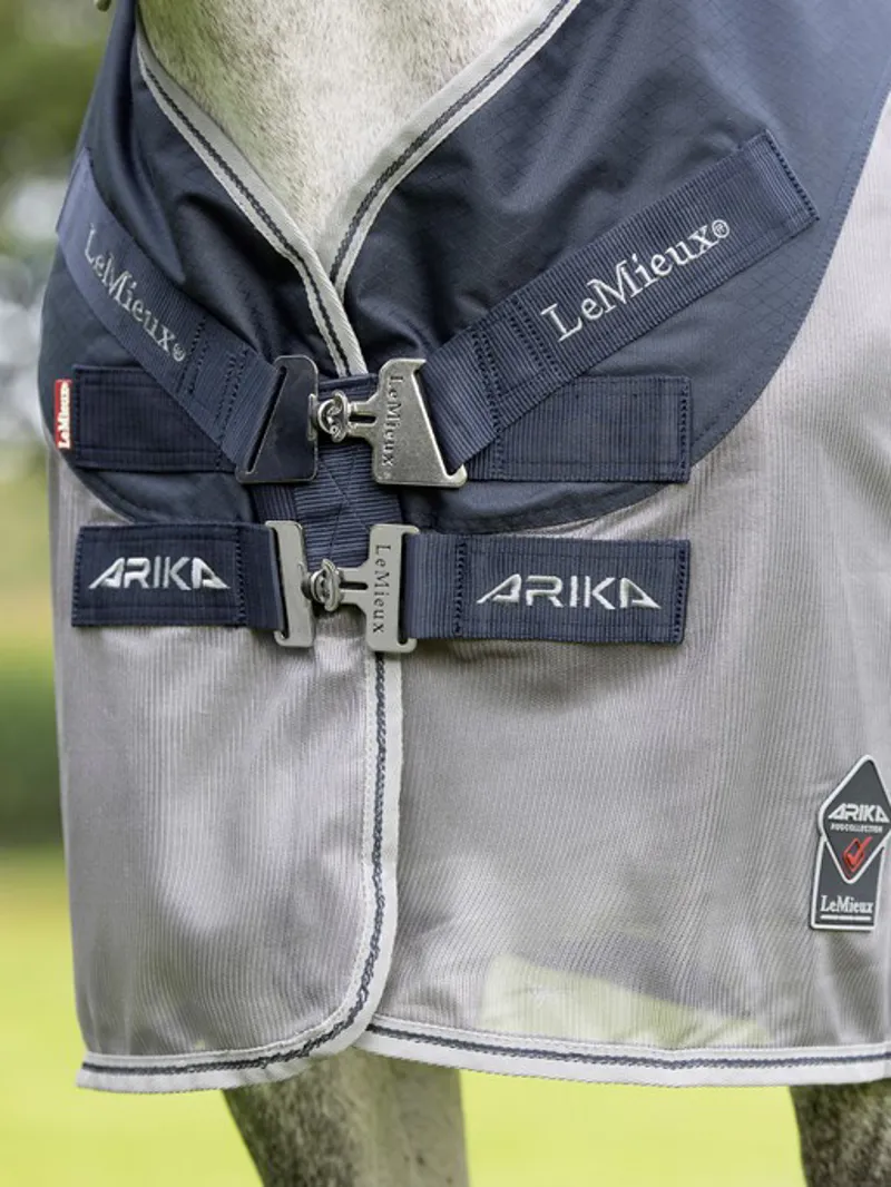 The extended shaped belly flap maximises coverage and features a three-strap closure with detachable central strap that helps to self-right the rug. The design registered angled front fastening system distributes pressure to prevent rubbing on the point of shoulder and across the chest.