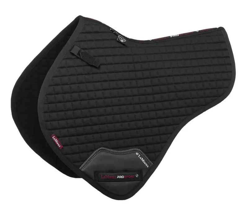 The LeMieux plain cotton Half Square is designed for the competitive rider offering modern style & performance. The more streamline half cut profile is cooler than a full square and less bulky, making it one of the least restrictive jumping pads. With its high wither, elasticated D-Ring tabs and signature teardrop girth protection area this is a very sporting looking pad.