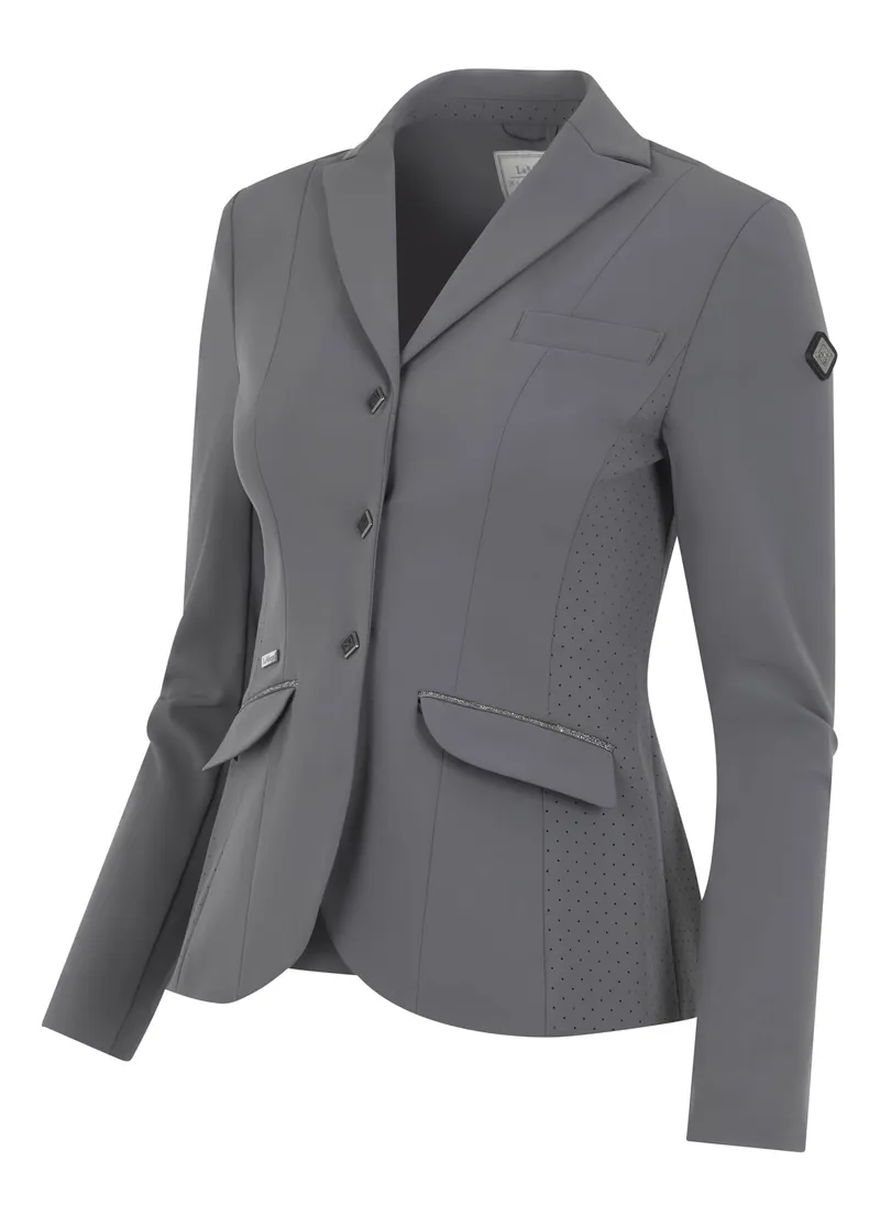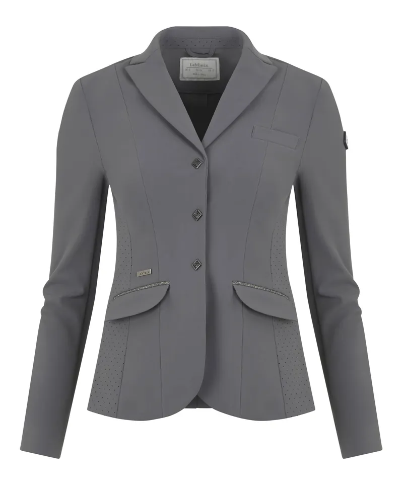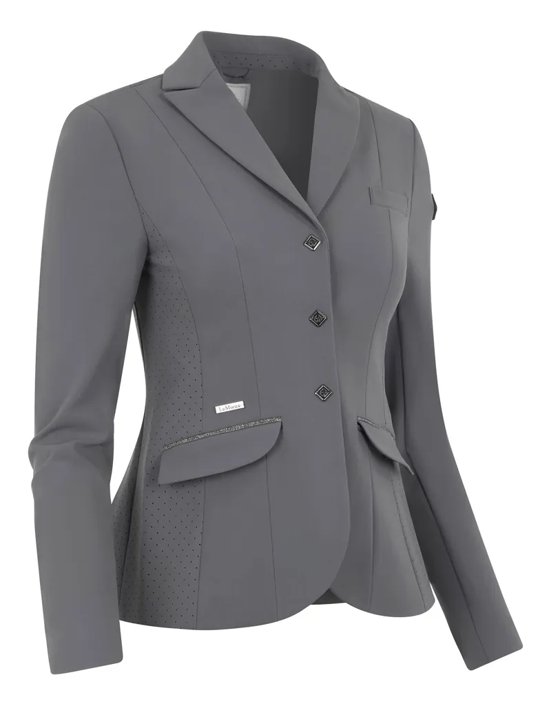 The stunning new Dynamique Show Jacket has been designed with your competition performance in mind. Vented side panels and sports mesh lining to the front provide the ultimate breathability, combined with superior stretch and recovery so that the rider is unrestricted and free to move. A subtle beaded trims on pocket edges and back belt panel add a touch of luxury sparkle and creates a flattering silhouette and stylish appearance. Fastened with a front zip and custom LeMieux press stud for stunning practicality, this Show Jacket is a must-have for all competition riders.