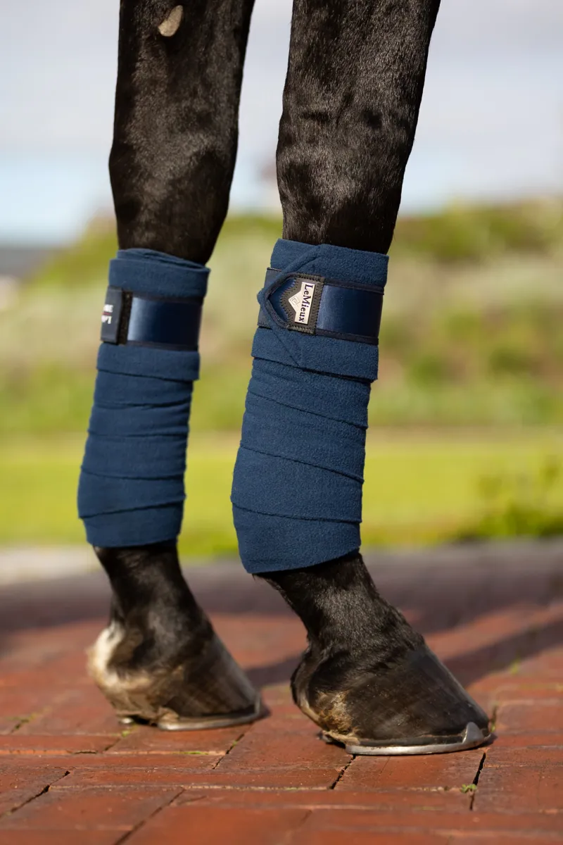 The perfect match to complete the Loire Collection. These beautiful fleece polo bandages have luxurious satin end-detail and the signature LeMieux embossed metal motif. Made from the highest quality fleece to avoid piling. These exercise bandages can be used on their own or with LeMieux under bandage pads for extra protection.