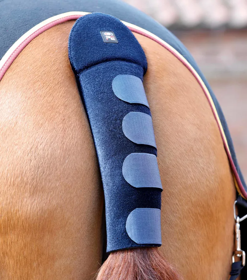 The outer fabric provides custom adjustment options to fit most horse’s tails and four Velcro straps ensure secure fastening and provide additional anti-slip properties, contouring comfortably to the shape of the tail and applying even pressure.