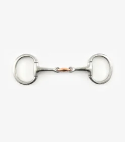 The lozenge in the centre of this bit contours the shape of the tongue and helps to reduce the nutcracker action of a single jointed bit which helps form a soft contact, allowing clear aids to be given down the reins. Copper is a warm metal which encourages salivation and mouthing on the bit. A useful bit for horses that tend to lean against the riders hands.