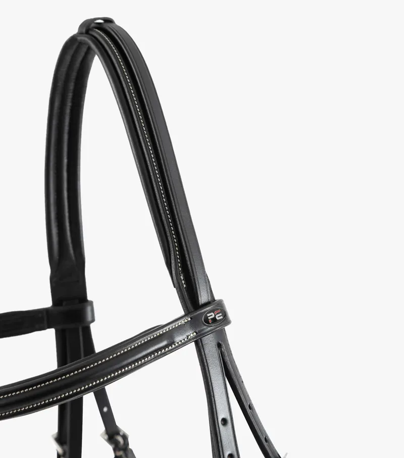 • Soft padded browband with round raised design, contrast stitching and ‘PE’ branded brooch either side