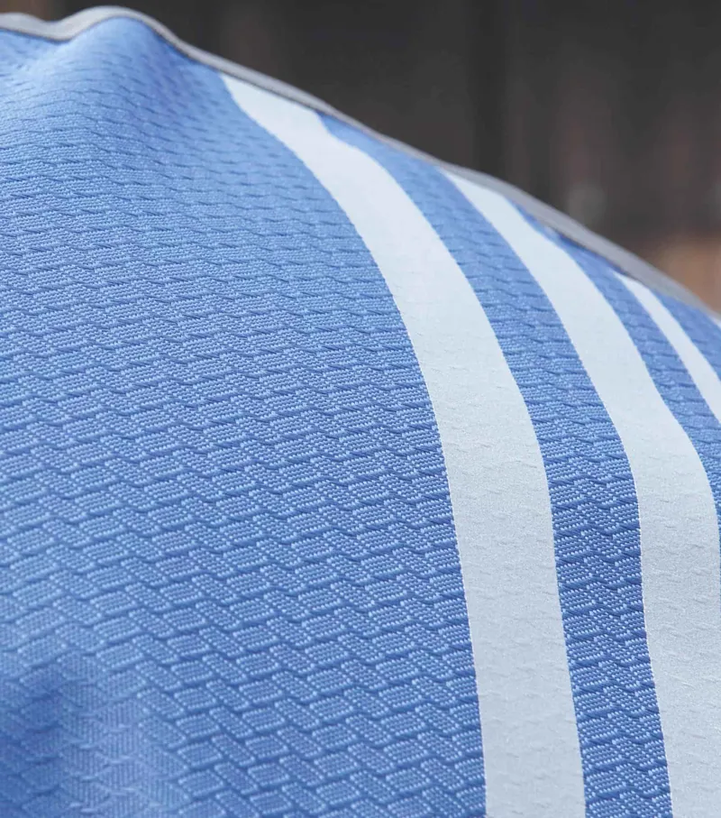 The Stratus Exercise Sheet is crafted from a waterproof 1200D diamond ripstop outer with a 280g bonded stay-dry lining. Lightweight and breathable, this sheet will help wick away moisture whilst keeping your horse warm and dry in cold or bad weather conditions. The design features various reflective elements, including our signature ‘Stratus’ reflective strips on both sides, as well as the tail flap and binding, helping to improve visibility when out in low light conditions. Cut to fit around the saddle, the rider is easily able to put on or remove this sheet whilst on board. Eye catching, innovative and colourful, this reflective exercise sheet is perfect for hacking out in dull conditions or schooling in cold/wet weather.