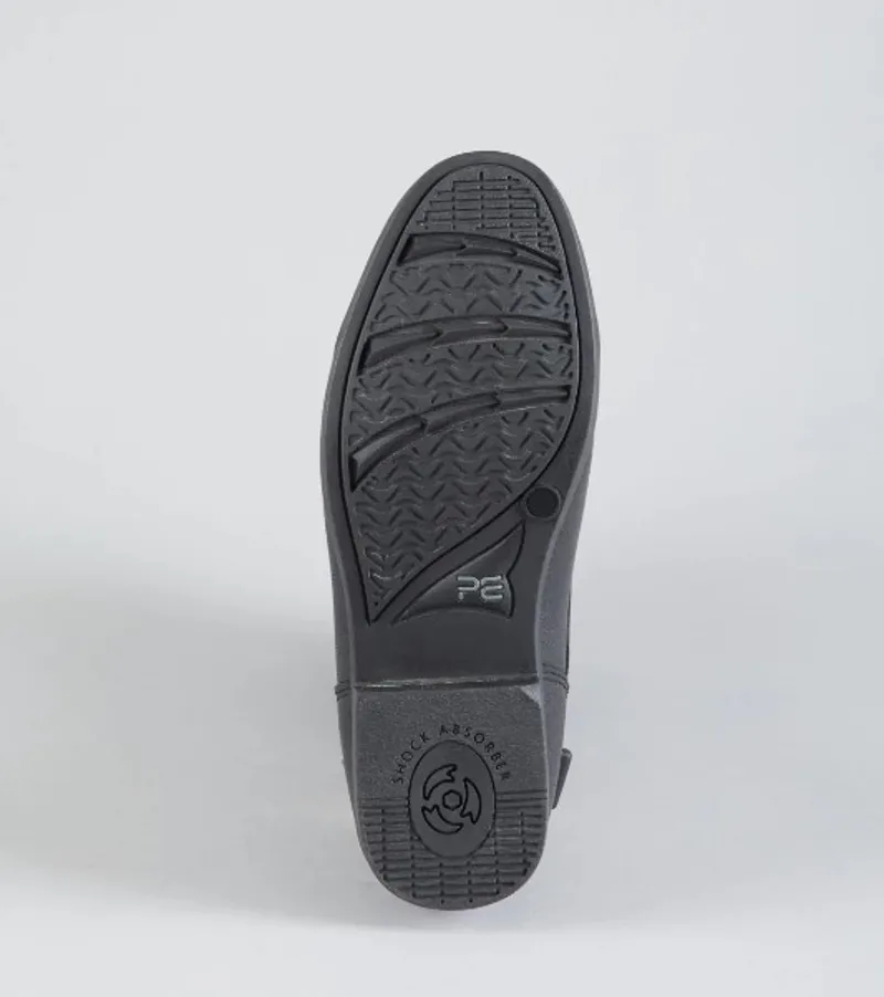 Elastic side panels improve comfort and flexibility around the ankle, making these leather horse riding boots perfect for use everyday. At the heel of the boot you will find two-point spur rests above the embossed PE branding on the outside of the boot. To provide lasting comfort, the moulded anti-slip sole has been designed to support the heel, bridge and ball of the foot whilst absorbing shock and impact from walking. Finished with a subtly branded pull tab, these comfortable short riding boots are perfect for your seasonal equestrian wardrobe.