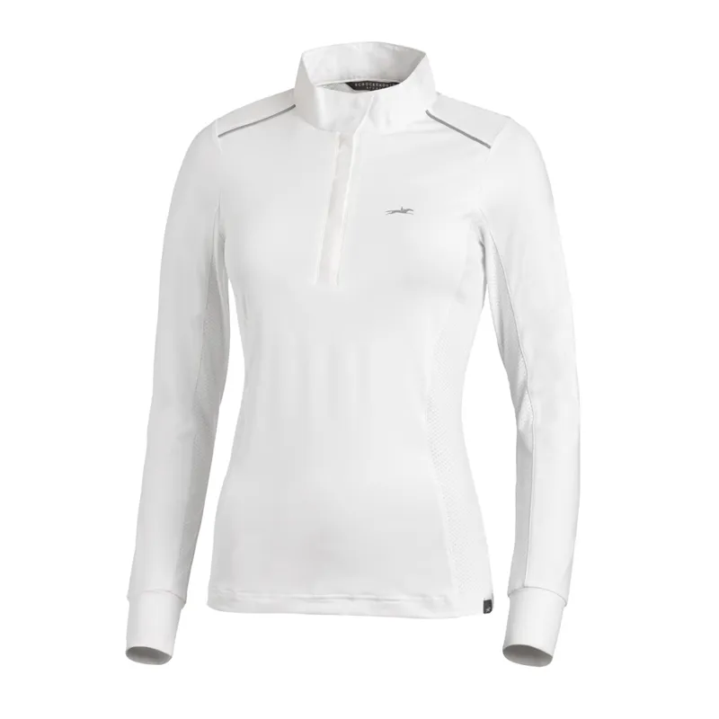 A distinct design and high functionality characterise the ladies‘ show shirtADELAIDE UV. Shoulder yokes with contrast piping and a restrained logoprint form nice highlights. Due to the hidden zipper and press buttons,the shirt is an uncomplicated companion at competitions. Well-designedmesh inserts at the sides ensure an ideal fit and great circulation ofair. The wearer is protected against UV rays thanks to a special UVtreatment of the fabric.
