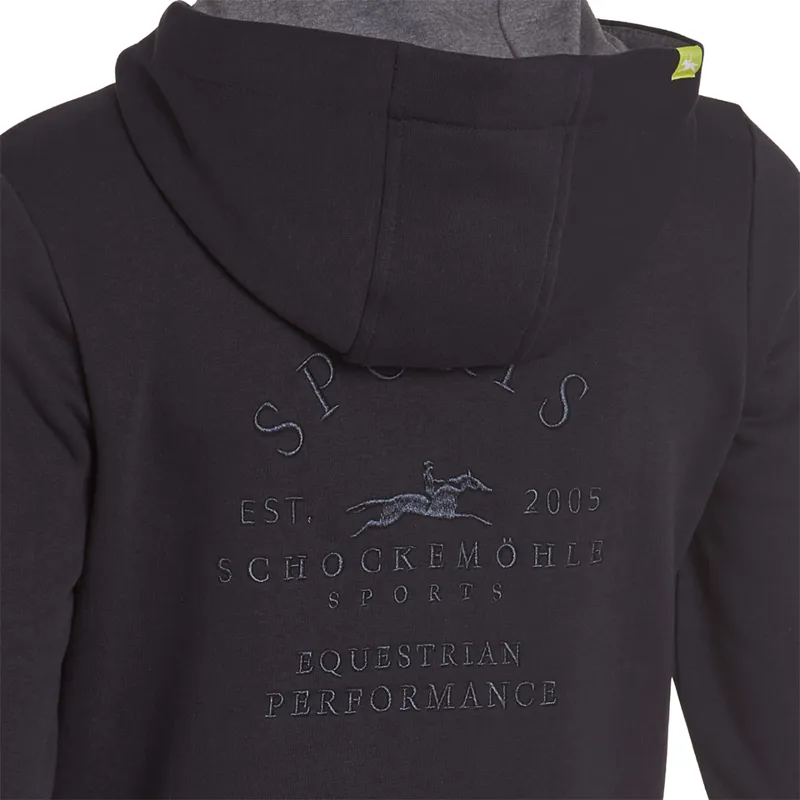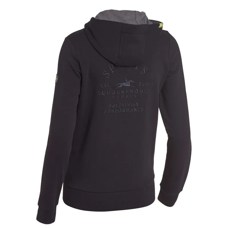 So comfortable, that you actually don’t want to take it off: the ladies’sweat jacket Cora by Schockemöhle Sports! The soft cotton fabric keeps youwarm and is particularly pleasant to wear. The jacket has a waisted shapeand a hood with contrast coloured lining, which is adjustable. Additionalfashionable details are the coloured cords and a logo embroidery kepttone-in-tone on the back.
